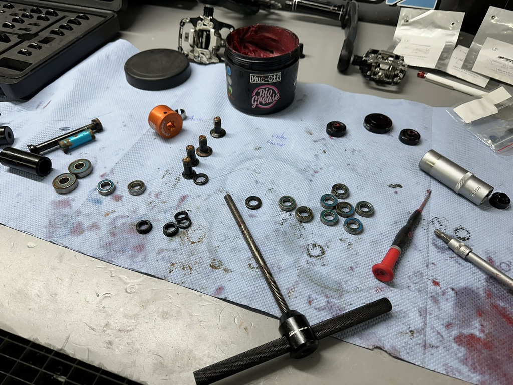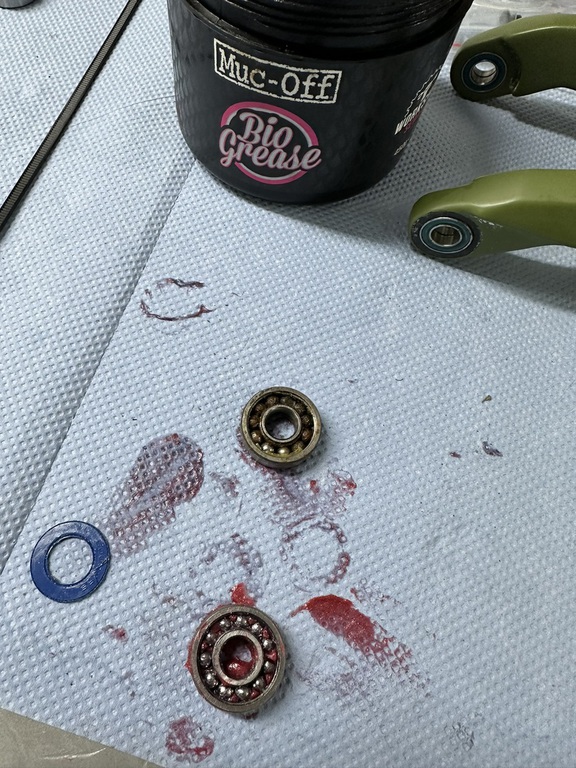 • Komplette Lagertausch der Umlenkung oder Abschmieren mit RSP BEARING BUSTER (Kugellagerfett) und RSP CREAK FREAK (Montagepaste)